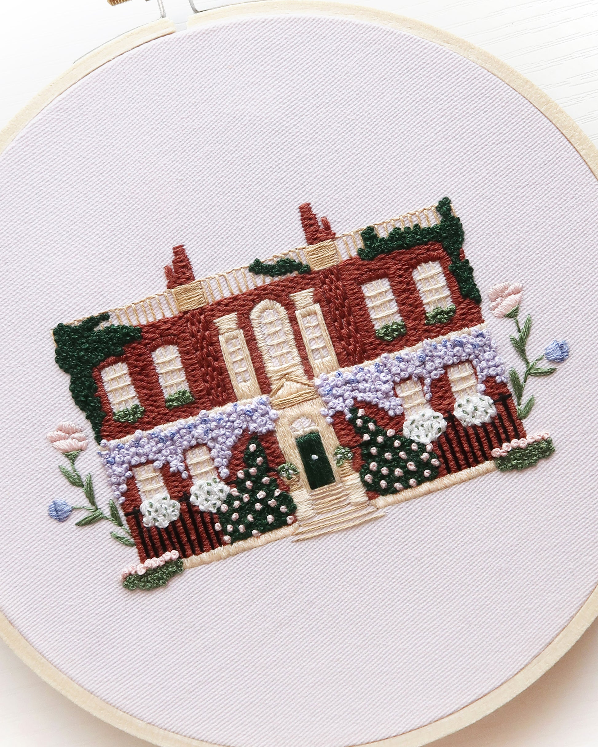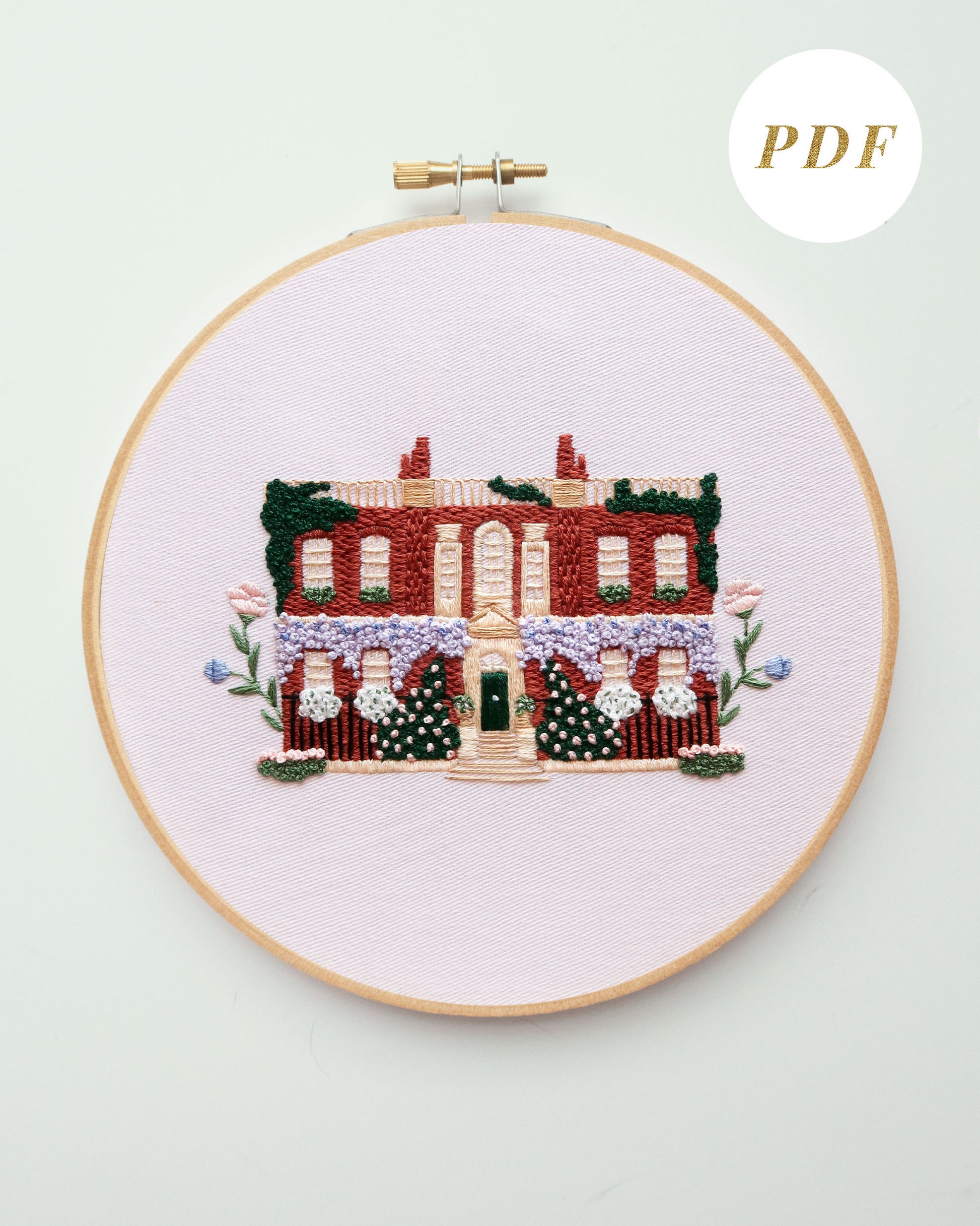 Featuring the Bridgerton's iconic Wisteria House, this intermediate embroidery pattern is the perfect craft to fill all your regency era needs.