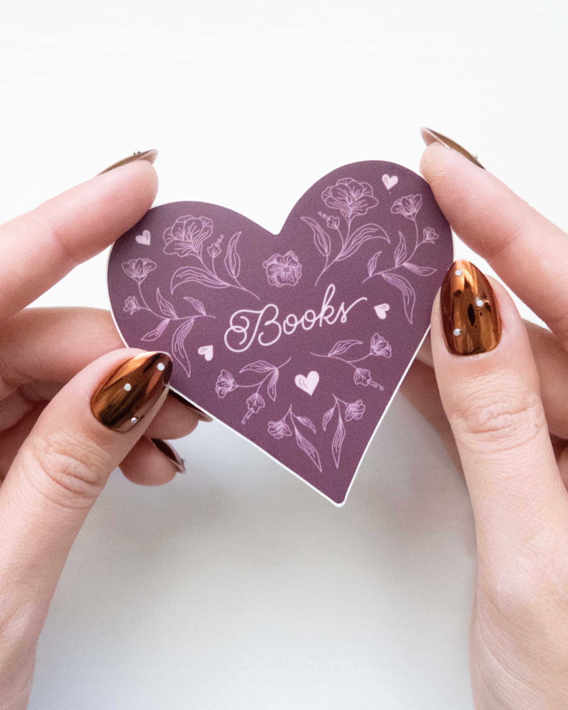 Featuring "books" in a heart motif, this feminine, floral vinyl sticker makes the perfect addition to any kindle, laptop, or water bottle for the fantasy book lover!