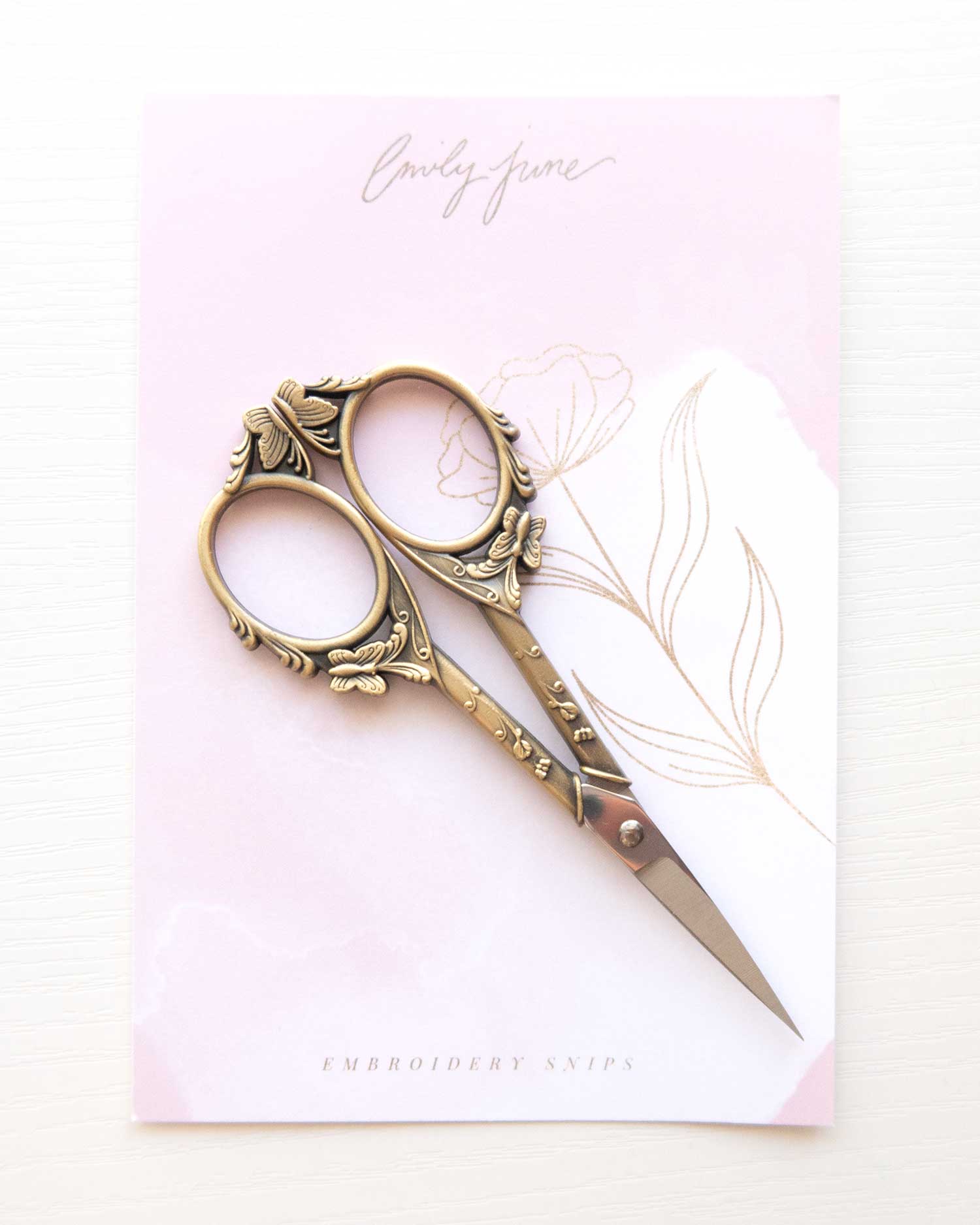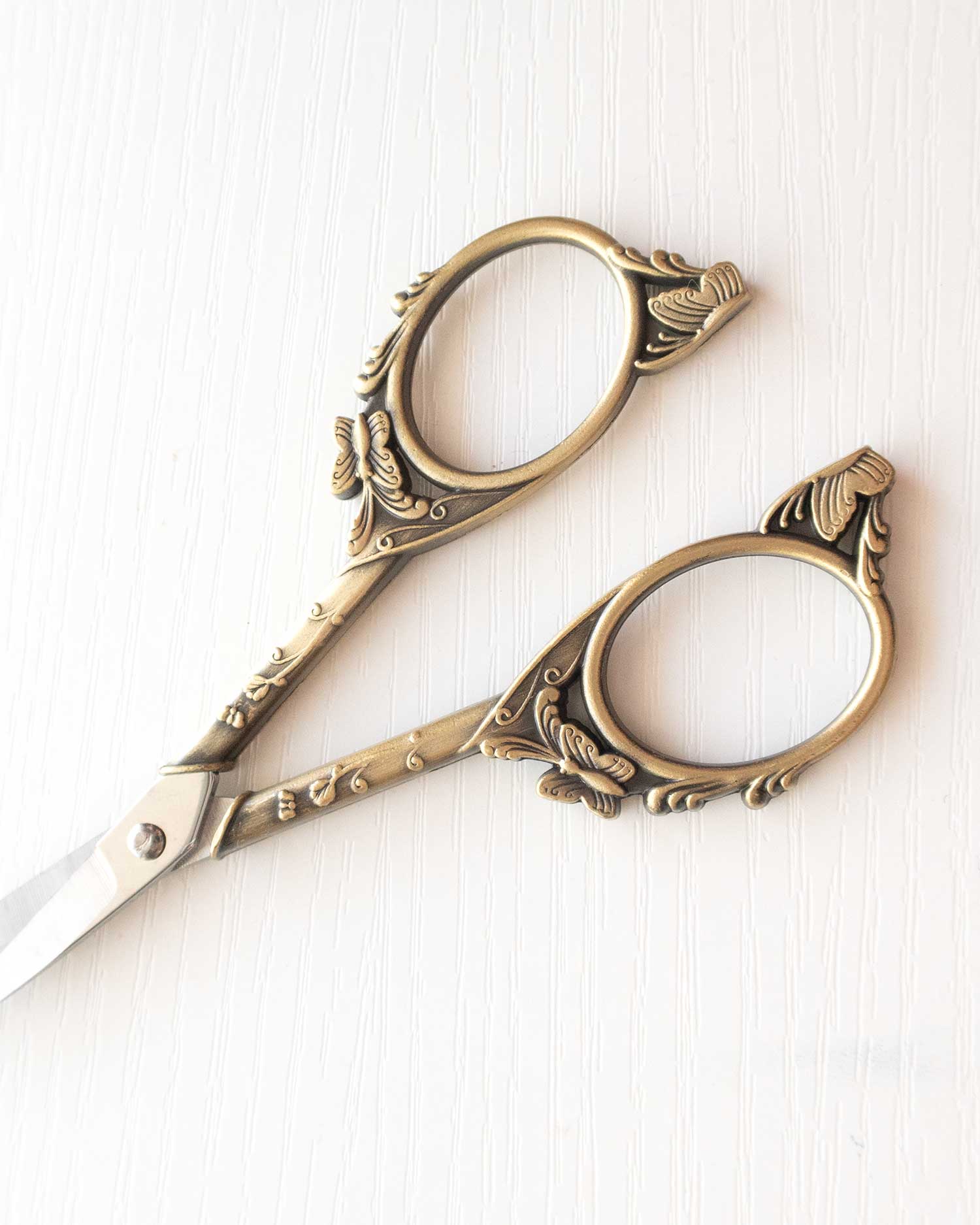 These delicate, romantic embroidery scissors feature butterflies and florals in a vintage gold. Sharp and perfect for cutting floss!