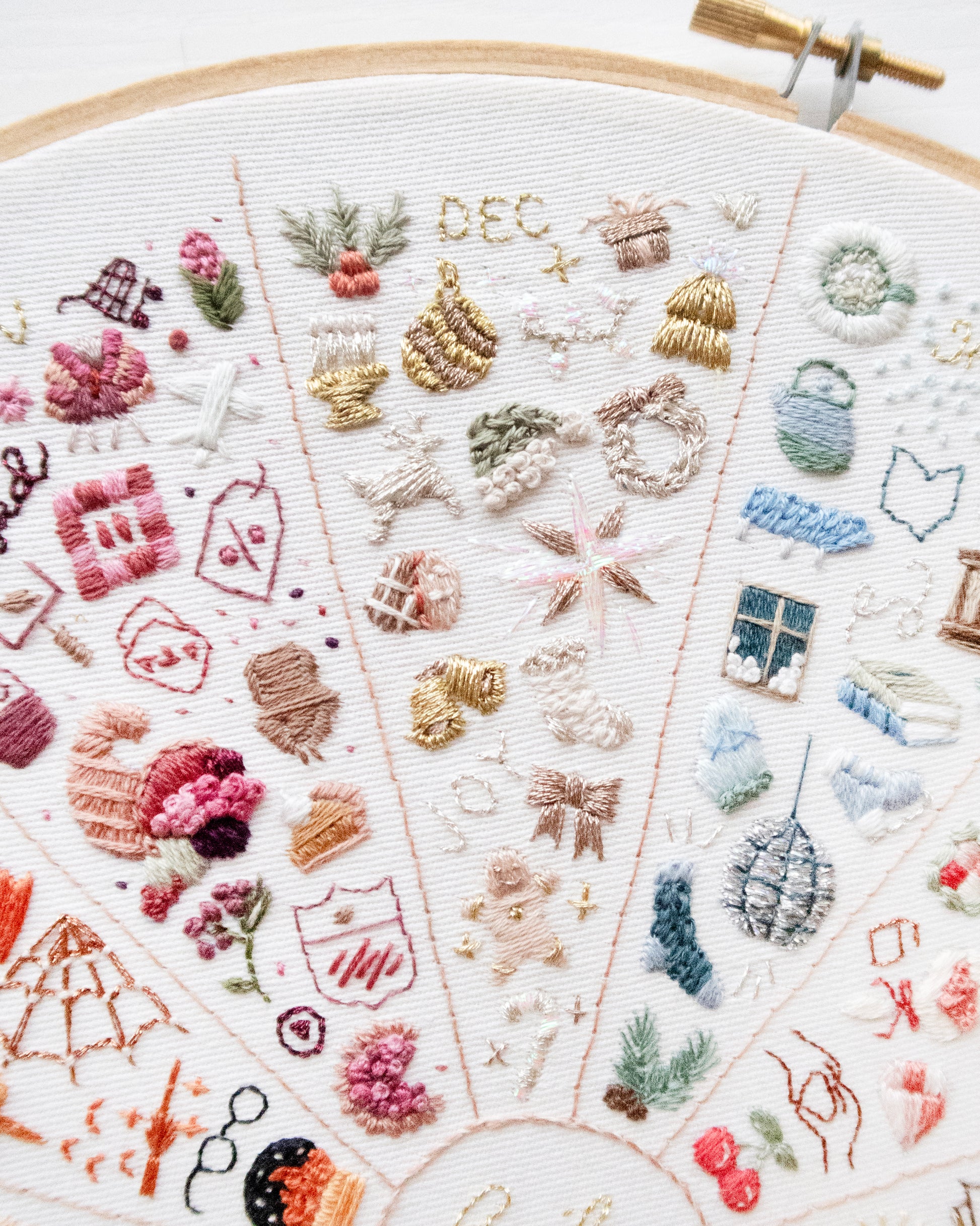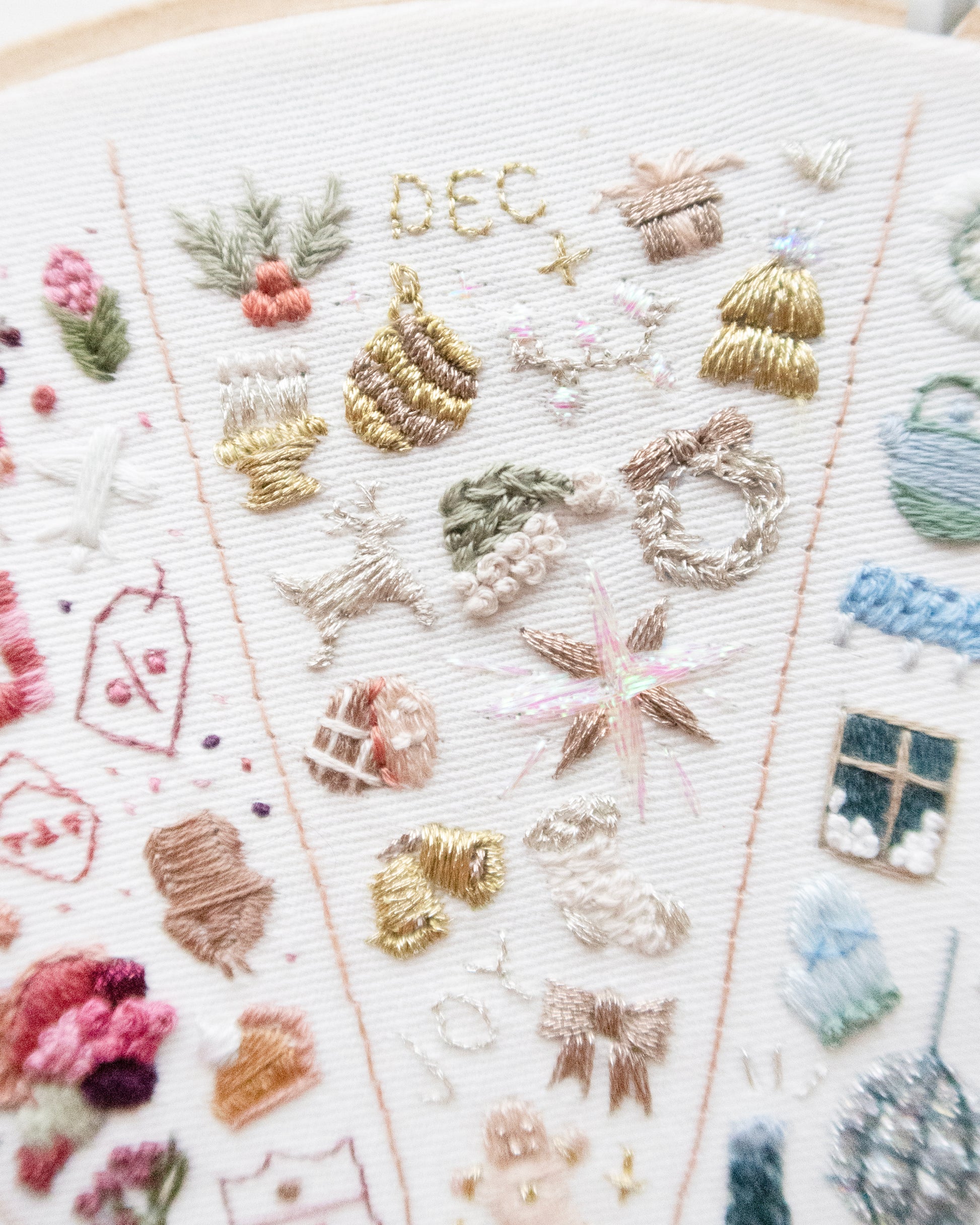 This pattern features 15 detailed, tiny embroidery Christmas and holiday-themed designs for your 2024 Embroidery Journals! This is also a great way to learn new stitches and grow your embroidery skill.