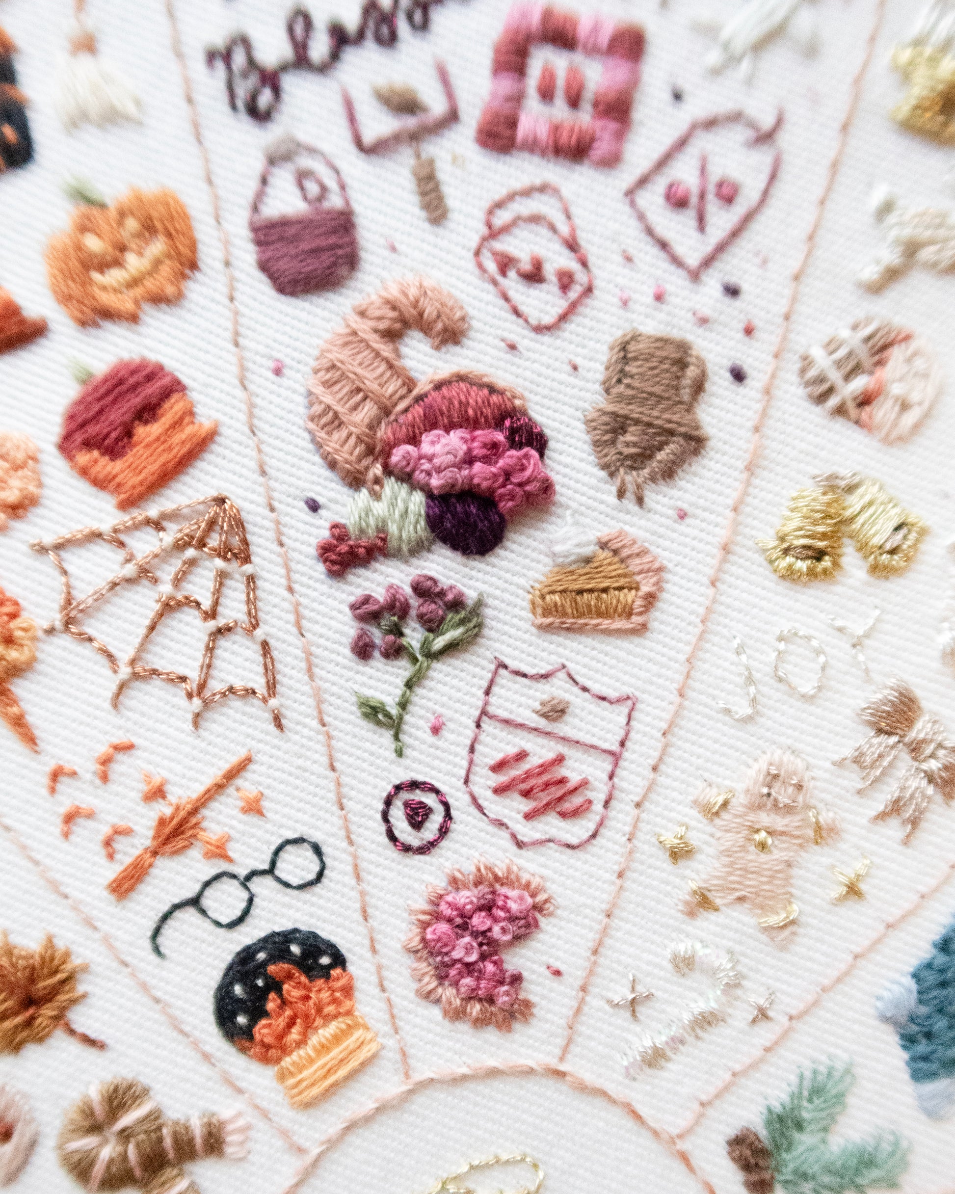 This pattern features 15 detailed, tiny embroidery Thanksgiving, berry and fall designs for your 2024 Embroidery Journals! This is also a great way to learn new stitches and grow your embroidery skill.