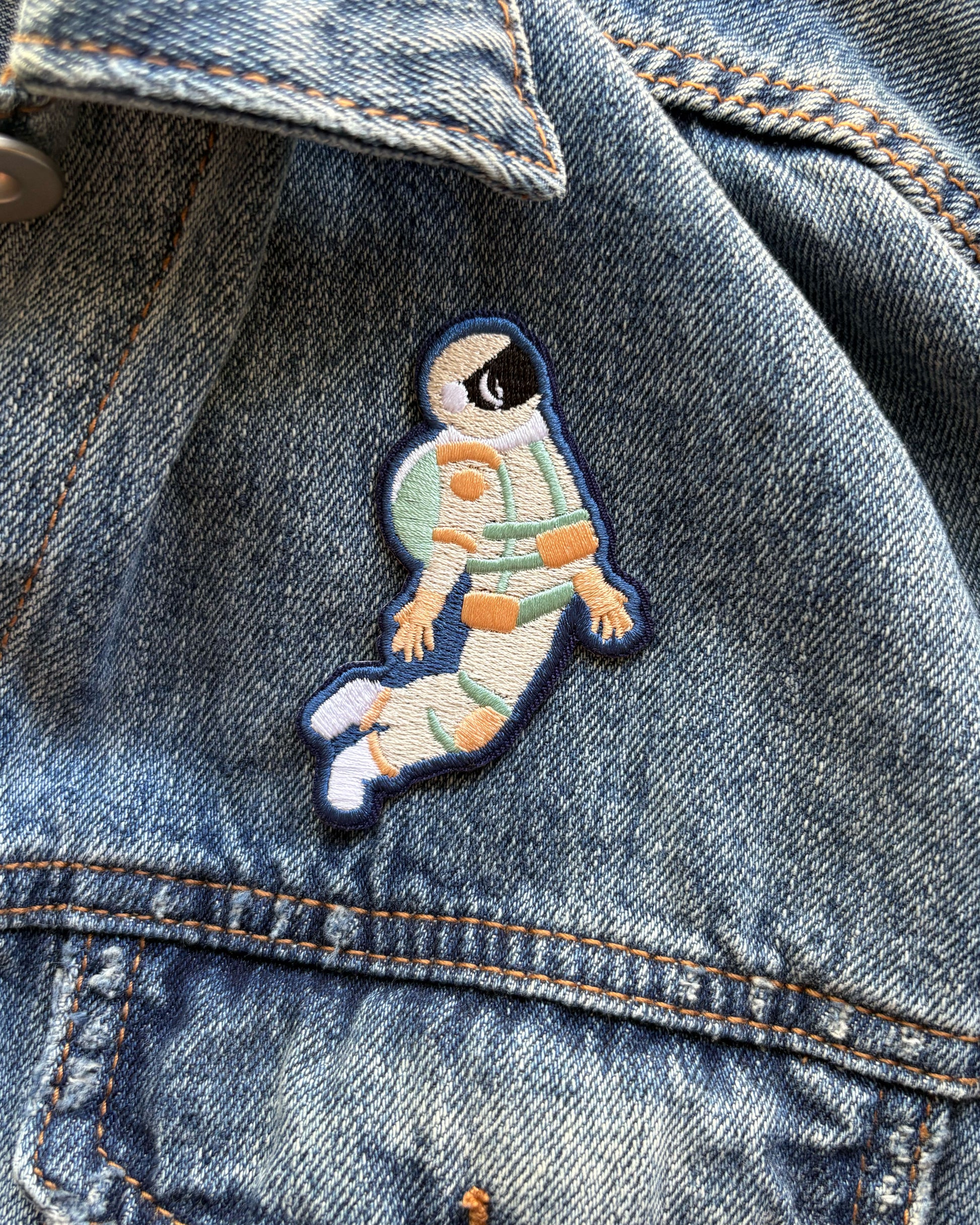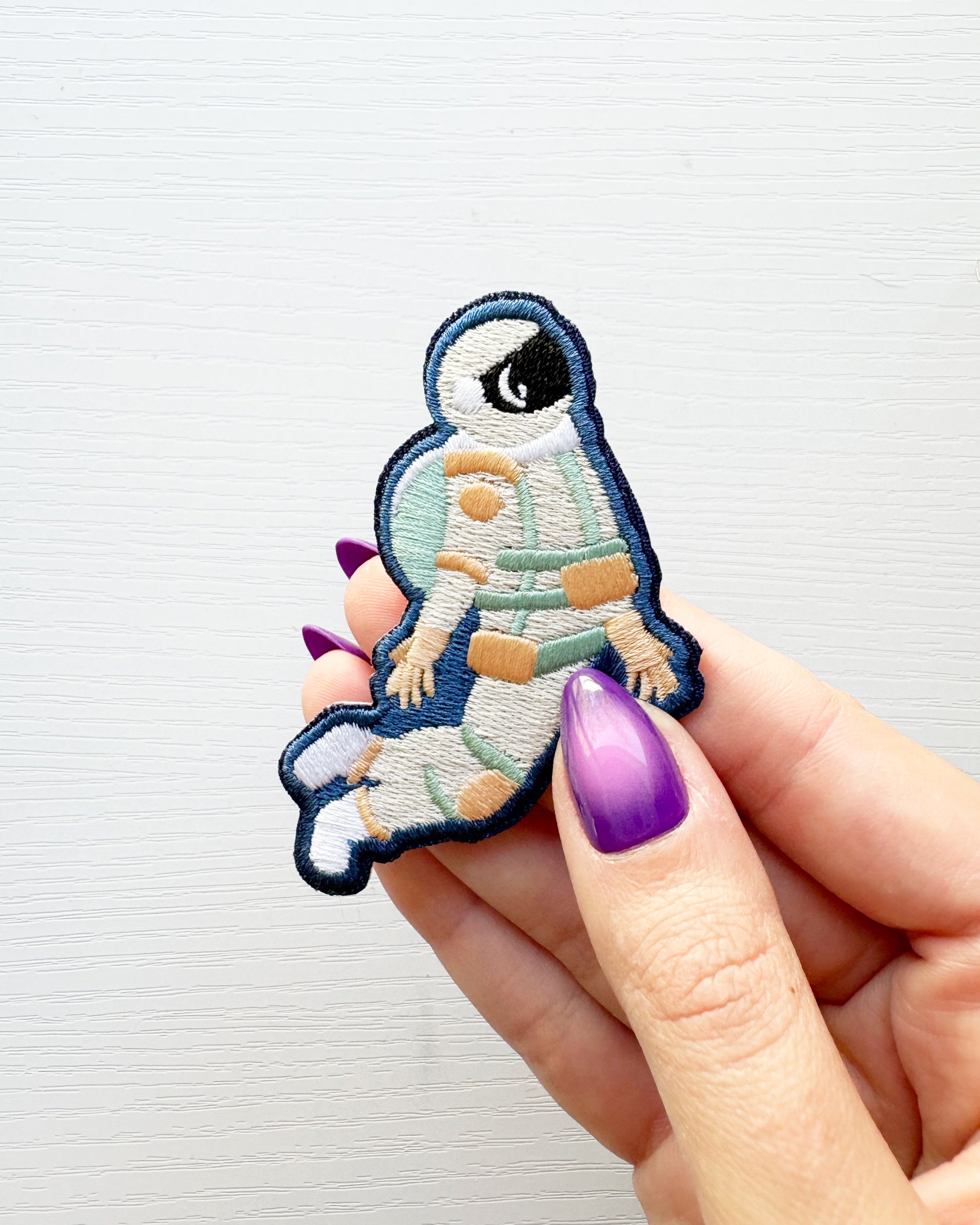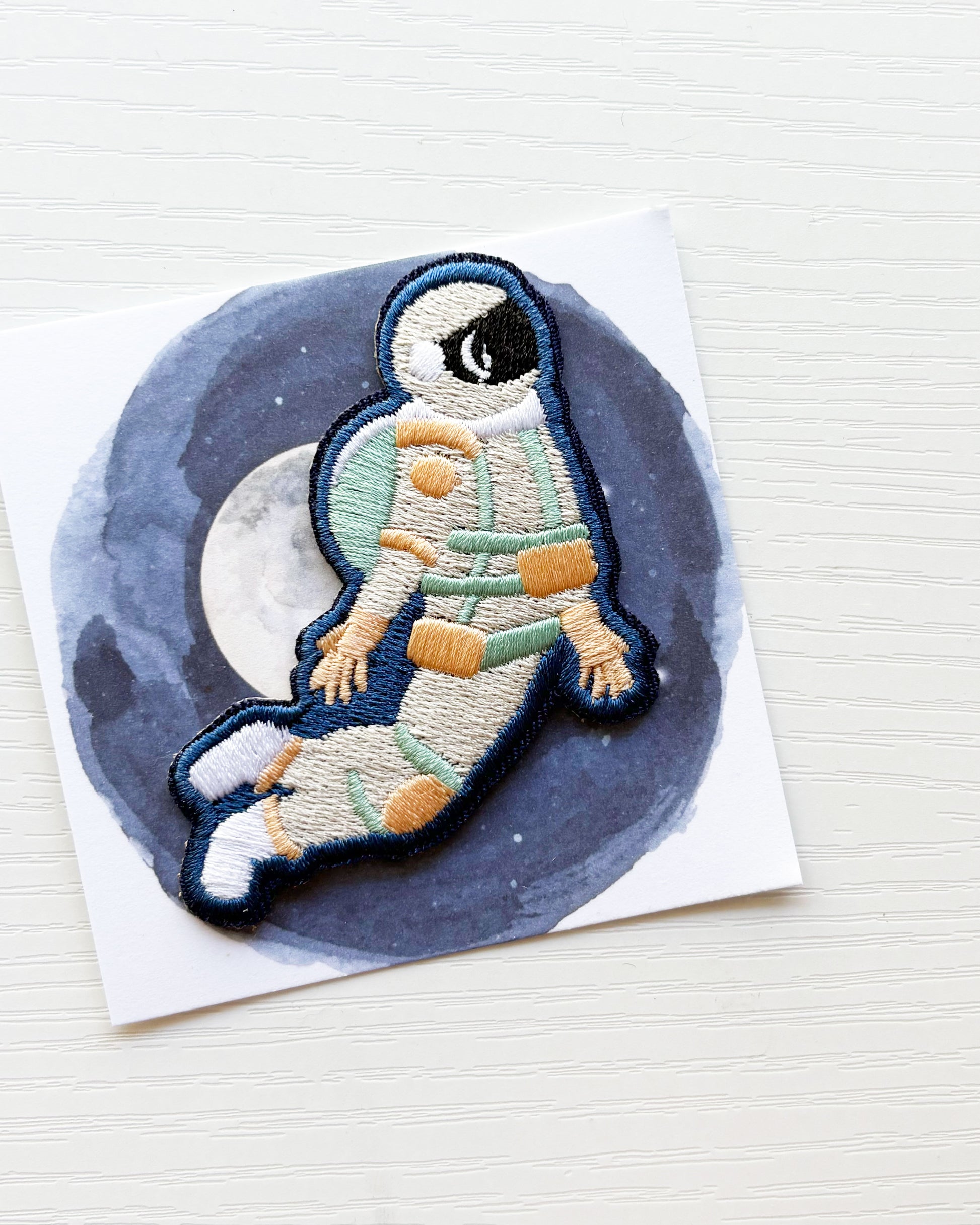 Measuring about 3 inches tall, this iron on embroidered astronaut patch is an adaptation of Emily June's hand embroidery.This patch is the perfect accessory for any bag, jacket, banner, or more! Simply iron onto your fabric of choice and you are good to go. Made for lovers of outer space.