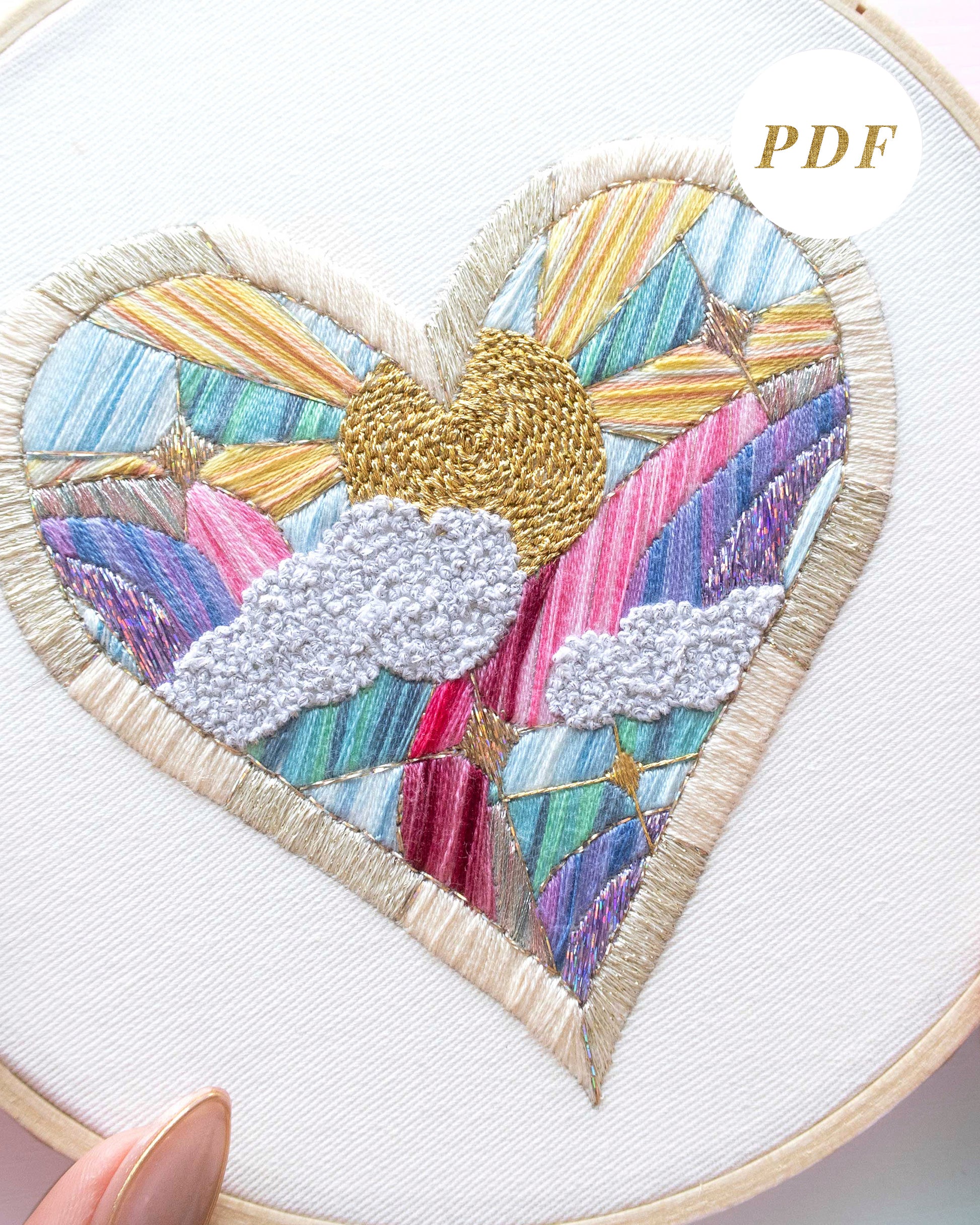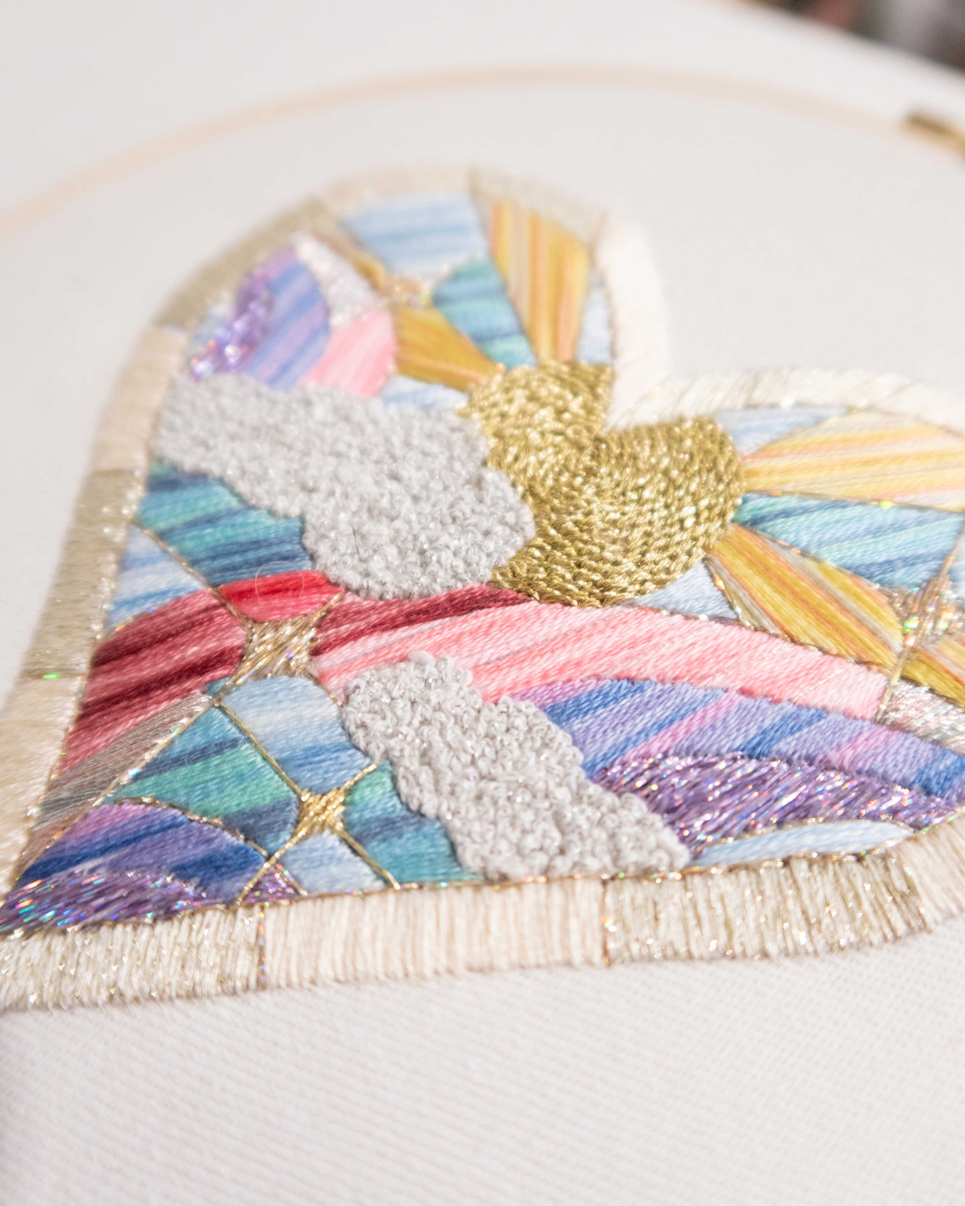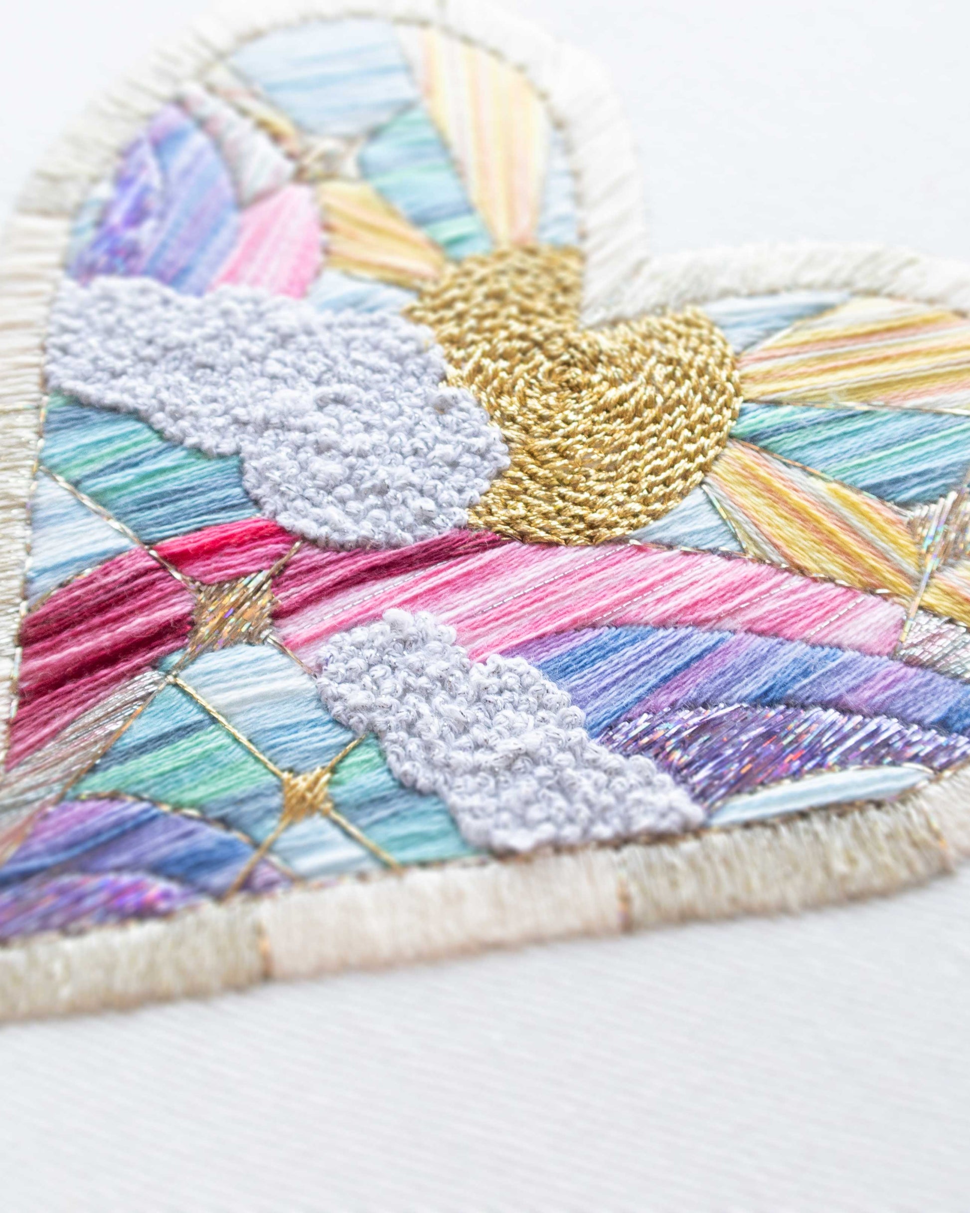 Inspired by the iconic Lover album, this heart-shaped stained glass embroidery pattern uses variegated floss and holographic shimmers to create a truly magical piece.