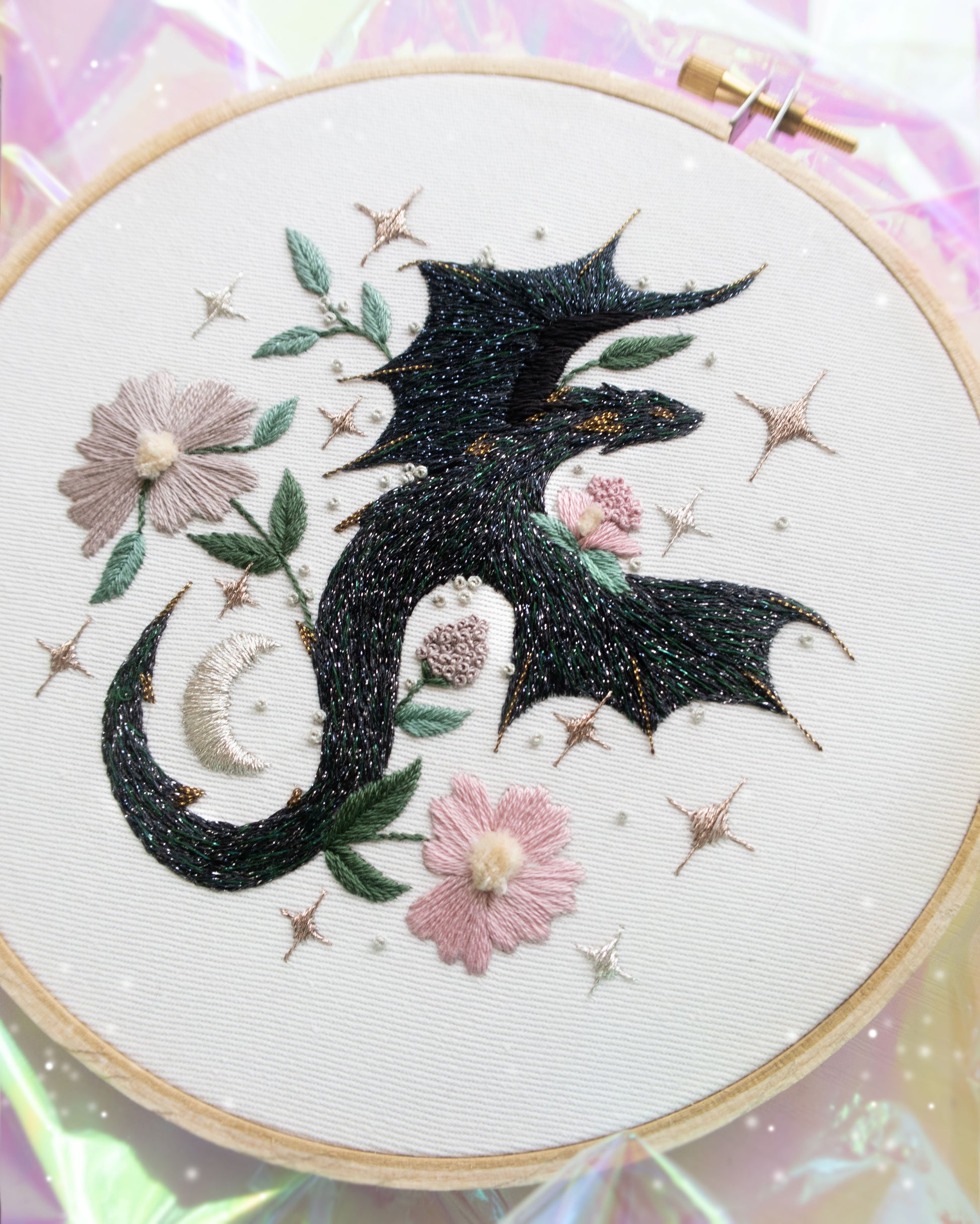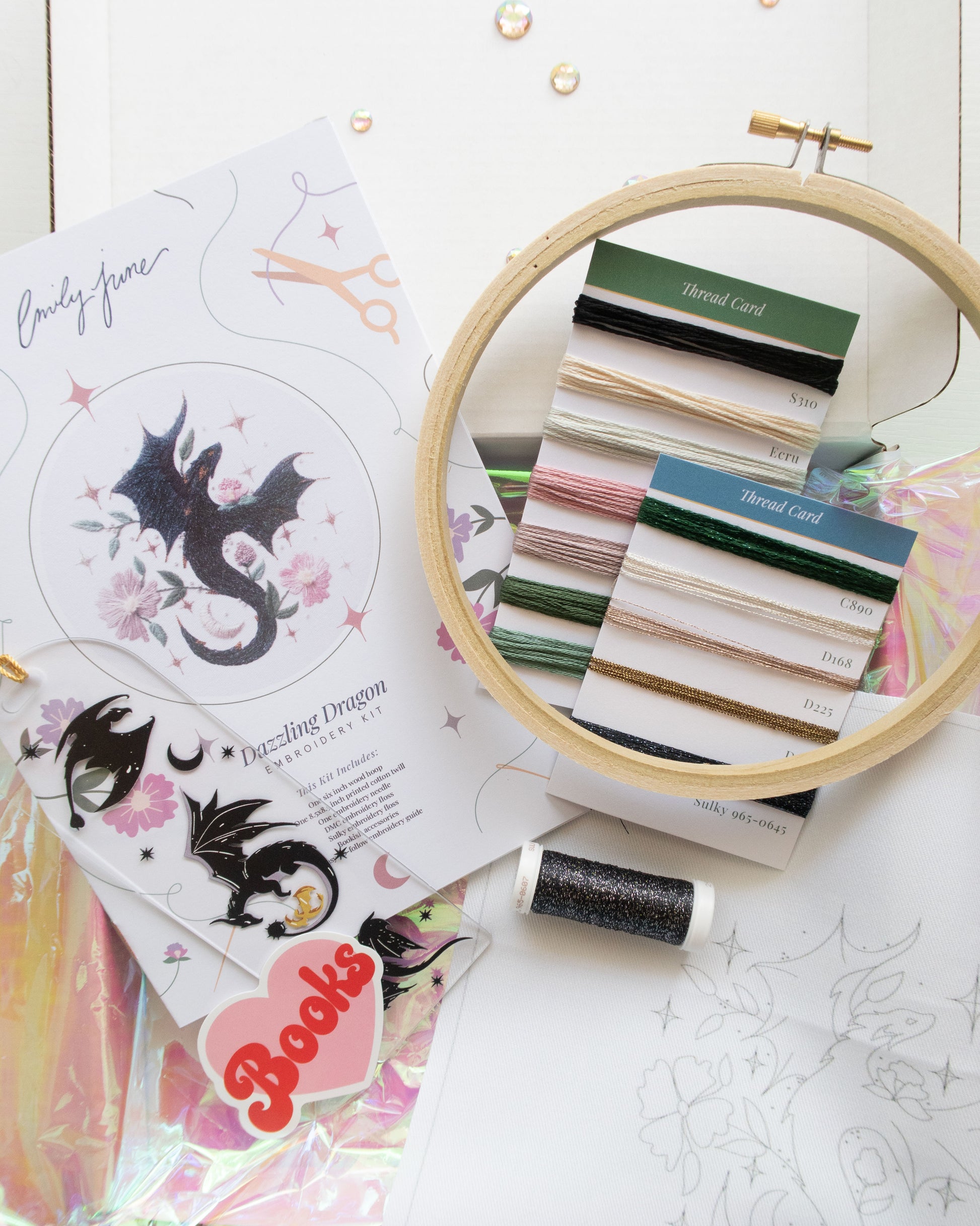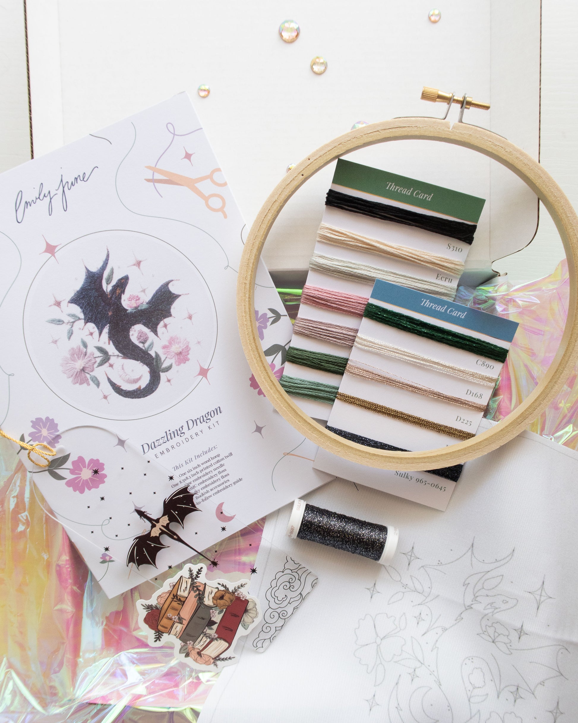 Inspired by Andarna from the Fourth Wing book series, this iridescent dragon embroidery kit is perfect for any fantasy-loving stitcher. From beginner-friendly to intermediate stitches and techniques, this pattern will suit a wide-range of skill levels and comfort!