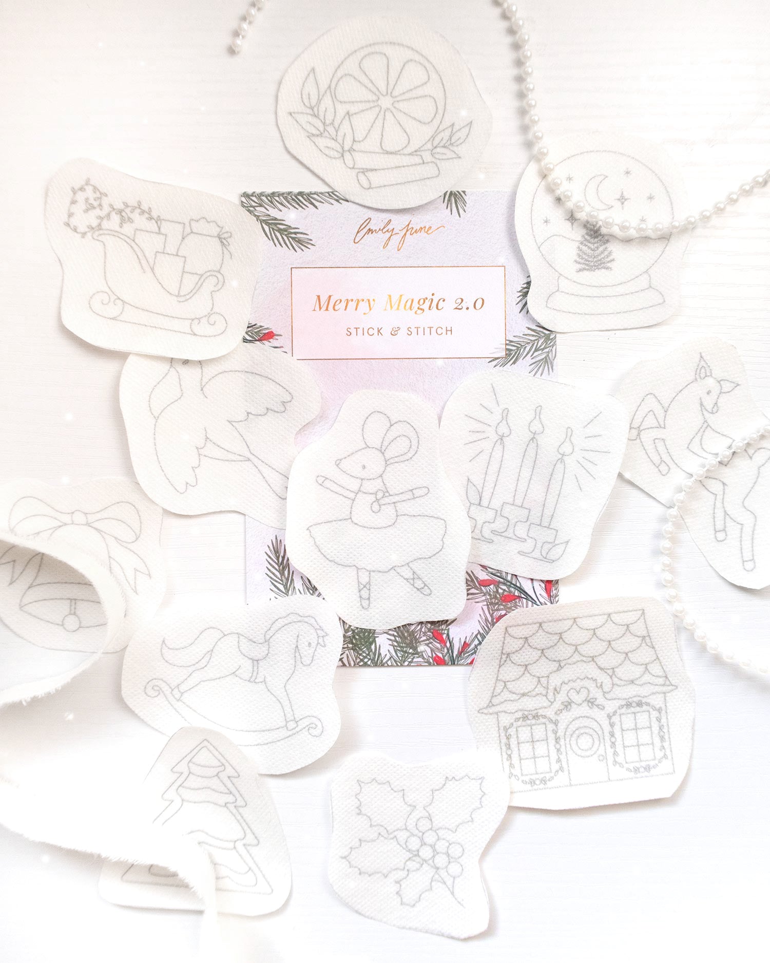 This Christmas-themed Merry Magic 2.0 Stick and Stitch pack comes with 12 MORE festive designs that can be transformed into ornaments, gifts, etc! Simply peel away the backing, stick onto your fabric, stitch, and rinse away with water.