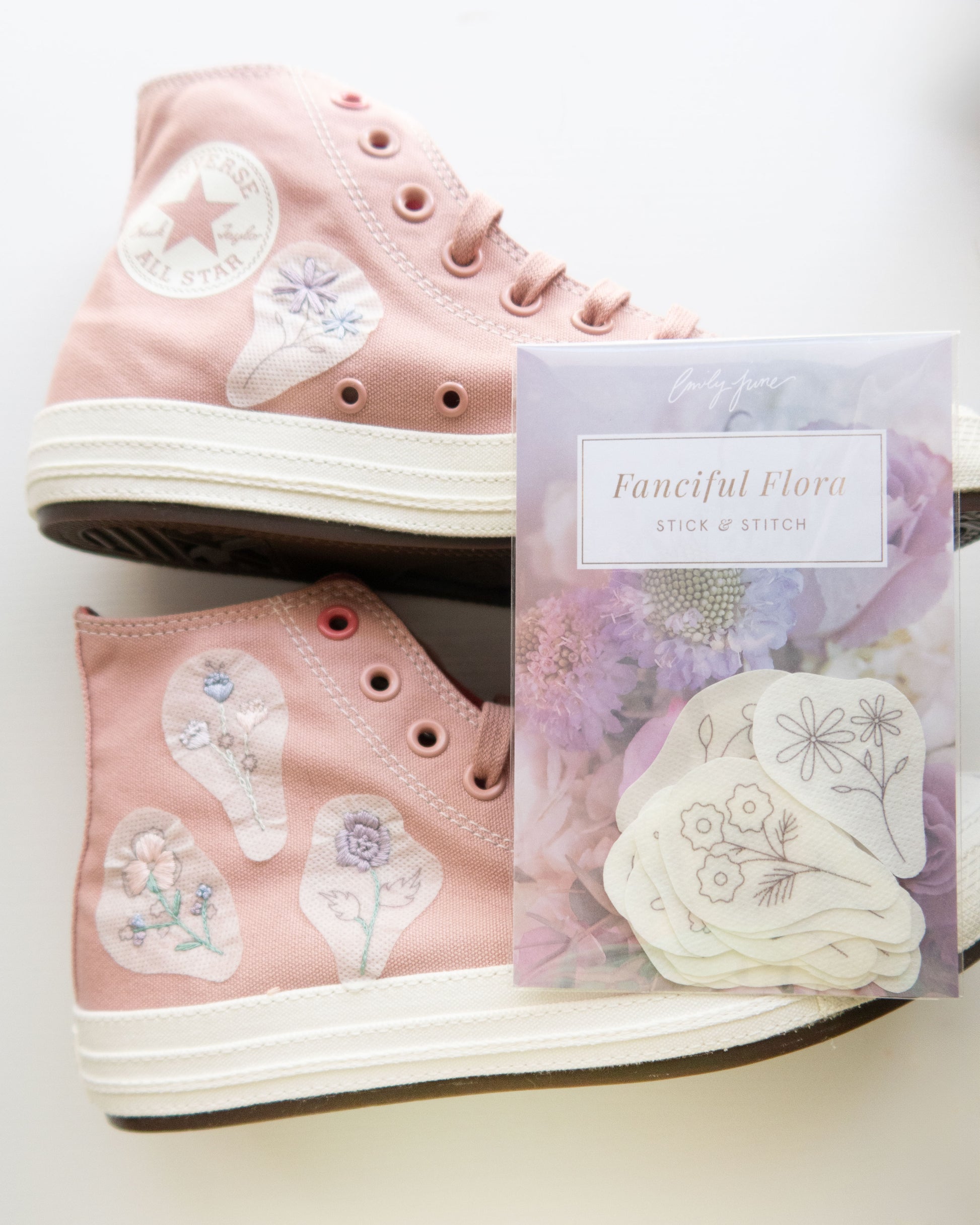 This Fanciful Flora themed wildflower hand embroidery stitch and stick pack comes with 20 boho flowers that peel, stick onto fabric, and then rinse away with water after you've stitched. This versatile set is perfect for clothes, towels, shoes, gifts, and more!